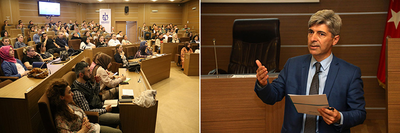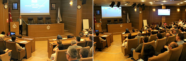 Kurumsal Gelişim Dairesi Başkanı Dr. Bayram Çolakoğlu tarafından daire başkanları ve şube müdürlerine yapılan bilgilendirme sunumunda; katılımcı, kapsamlı, yönetim biliminin gerektirdiği metotlarla yapılan planın, stratejik yönetimin diğer temel bileşenleriyle bağlantısının daha güçlü kurulmasını sağlayacağına; hizmet üretme, sunma noktasında daha etkili ve verimli işler çıkarılacağına değinildi. Stratejik planda yer alan misyon, vizyon, amaç, hedef ve performans göstergeleri ile bu bağlamda gerçekleştirilen faaliyet,projelerin birbirleri ile bağlantılarını, kavramsal tutarlılığını örnekler eşliğinde katılımcılara aktardı. Başkan Çolakoğlu; “Bu bakış açısıyla kritik faktörlerin daha net saptanacağının, kaynakların daha etkin kullanılacağının ve böylelikle hedeflere çok daha sorunsuz ulaşılacağını” belirtti.