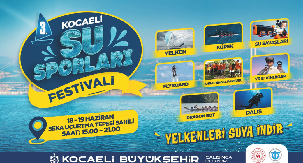 Sporun her alanına katkı sağlayan ve her yıl amatör spor kulüplerine destek veren Kocaeli Büyükşehir Belediyesi, hafta sonunda önemli bir spor festivalini gerçekleştirecek. Bu yıl üçüncüsü yapılacak Su Sporları Festivali, 18-19 Haziran tarihlerinde gerçekleştirilecek. Gençlik ve Spor Hizmetleri Dairesi Başkanlığınca Sekapark Uçurtma Tepesi Sahili’nde gerçekleştirilecek festivalde flyboard, su jeti, dragon bot, yelken, kürek ve su altı dalış branşlarında gösteriler yapılacak.