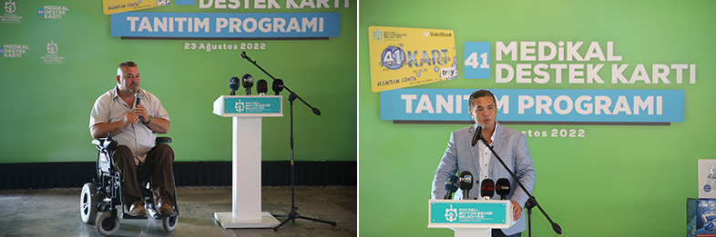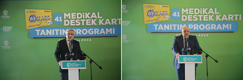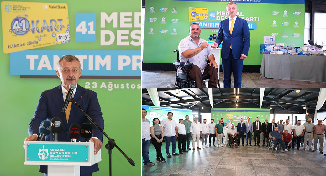 41 Kart Medikal Destek uygulamasının lansmanı, Kocaeli Büyükşehir Belediye Başkanı Doç. Dr. Tahir Büyükakın’ın katılımıyla yapıldı. Programa Genel Sekreter Yardımcısı Hasan Aydınlık, İl Sağlık Müdürü Yüksel Pehlevan, KOTO Başkan Yardımcısı Hüseyin Gezer, Doğu Marmara Medikalciler Yönetim Kurulu Üyesi Bayram Topbaş, Gölcük Engelliler Derneği Başkanı Hasan Bat, medikal firma temsilcileri, engelli bireyler ve aileleri katıldı.
