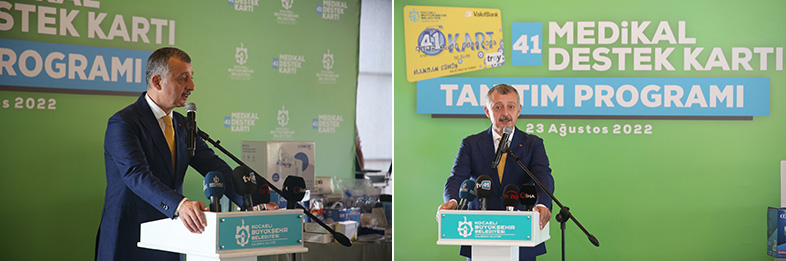 Projenin detaylarını anlatmak üzere kürsüye gelen Başkan Büyükakın, Türkiye’ye örnek olacak ve Türkiye’de ilk kez yapılacak bir projenin tanıtım programında bir araya geldiklerini söyledi. ‘’Türkiye’de bu çalışmanın başka bir örneği yok’’ diyen Başkan Büyükakın, ‘’Bize ulaşanlara medikal destek veriyorduk ama bu arada SGK'nın ödediği ve ödemediği medikal yardımlar olduğunu ve burada bazı sıkıntılar yaşandığını fark ettik. Mesela bir kardeşimizin aylık medikal malzeme harcaması beş bin lirayı bulabiliyor. Aile bütçesi açısından önemli bir rakam. Biz de bu noktada çözüm üretmek gerekiyor dedik. Aslında 41 kartla gıda, giyim ve nakit destekler veriyorduk. 41 Kart bizzat kendisi Türkiye için bir yenilikti’’ yorumunda bulundu.