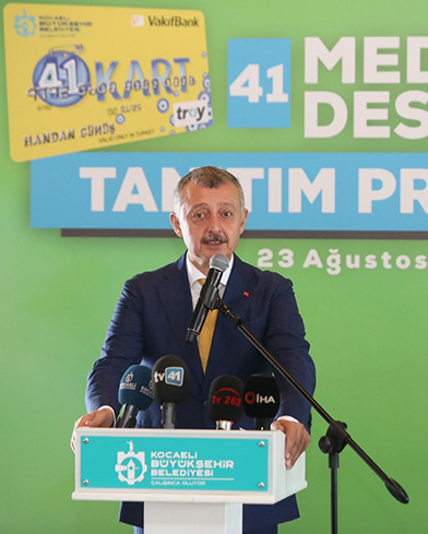 ‘’İnsanı yaşat ki, devlet yaşasın’’ anlayışıyla çalışmalarına devam eden Kocaeli Büyükşehir Belediyesi, dezavantajlı gruplara dönük projelerine bir yenisini daha ekledi. 41 Kart Medikal Destek uygulaması ile hasta ve engelli bireylerin Sağlık Kurulu Raporlarında yer alan ya da hekim tarafından reçete edilen cihaz ve sarf malzemeleri için destek verilecek. Programın lansmanında konuşan Başkan Büyükakın, Büyükşehir’in ağır engelli vatandaşlara verdiği aylık desteği de 1.000 TL’ye çıkardıklarını söyledi.