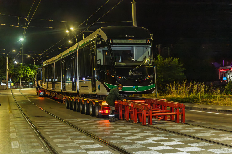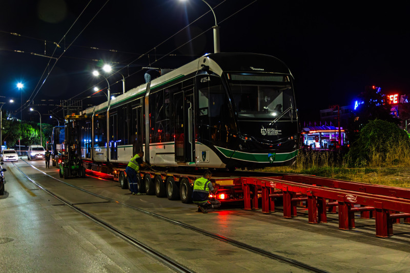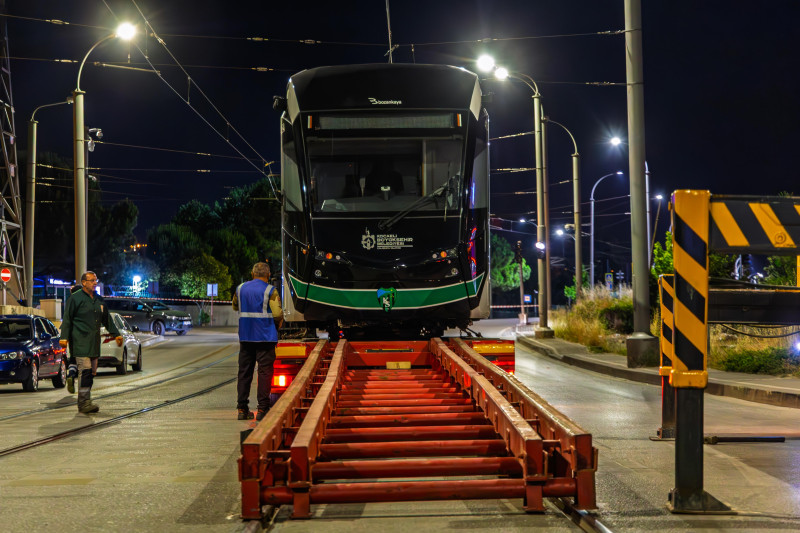 Kocaeli’ni demir ağlarla ören Büyükşehir Belediyesi, satın alınan 10 tramvay aracından 7’incisini de raylara indirdi