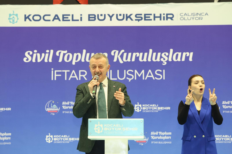 Kocaeli Büyükşehir Belediyesi, kent genelinde faaliyet gösteren sivil toplum kuruluşları için Kocaeli Kongre Merkezi'nde bir iftar programı düzenledi. Kocaeli Büyükşehir Belediye Başkanı Tahir Büyükakın'ın ev sahibi olduğu "Büyük STK İftar Buluşması"na AK Parti Kocaeli Milletvekili Veysel Tipioğlu, AK Parti İl Başkanı Dr. Şahin Talus, MHP İl Başkanı Kamil Akın, AK Parti İzmit İlçe Başkanı Halil Güngör Dokuzlar, kent genelindeki 820 esnaf odası, akademik meslek örgütleri, sendikalar, kooperatifler ve hemşeri derneğinin başkan, yönetici ve üyeleri katıldı.