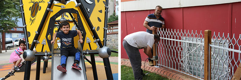 Ekipler, 170 metrekareden oluşan çocuk oyun alanına ise çeşitli oyun grupları monte etti. Yenilenen Adnan Kahveci Parkı’nda salıncaklara binip kaykaydan kayan Dilovalı çocuklar yeni yaşam alanlarında hoşça vakit geçiriyor. Çalışma dahilinde son olarak duvar üzerine ferforje demir korkuluk takan ekipler parkı daha güvenli hale getirdi. Orhangazi Mahallesi’nde 2 bin 550 metrekarelik alanda yeniden dizayn edilen parkın 900 metrekaresi yeşil alan, bin 300 metrekaresi de sert zemin olarak yapıldı. Yenileme çalışması kapsamında bay ve bayan tuvaletler ile mevcut kafeterya bakım ve onarımdan geçirildi. Adnan Kahveci Parkı yeni yüzüyle Dilovalılardan tam not aldı.