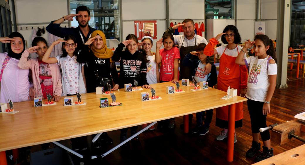 Kocaeli Büyükşehir Belediyesi Kültür ve Turizm Dairesi Başkanlığına bağlı olarak faaliyet gösteren SEKA Kâğıt Müzesi, gerçekleştirdiği atölye ve etkinliklerle farklı yaş gruplarını bünyesinde ağırlamaya devam ediyor. Son olarak hafta sonu gerçekleştirilen Ahşap Atölyesi’nde Türkiye ve asker temalı ahşap kalemlik yapan çocuklar Mehmetçiğe selam gönderdi.