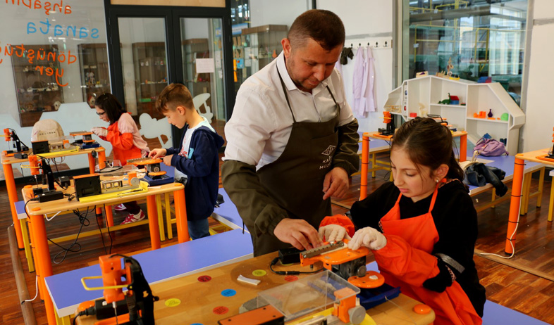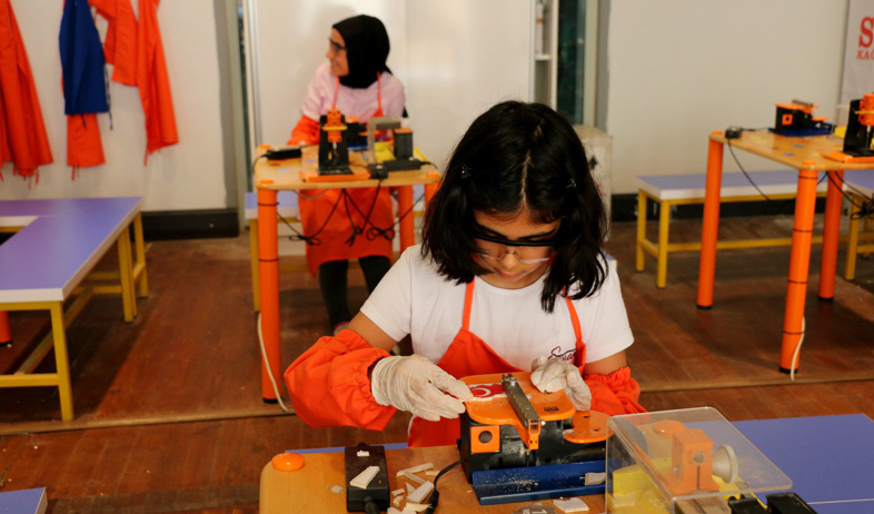 Hafta sonları gerçekleştirilen atölye etkinlikleri kapsamındaki Ahşap Atölyesinde öğrenciler önlüklerini giyip gözlüklerini taktıktan sonra tezgâhların başlarına geçti. Ahşap kalemlik yapan öğrenciler, kalemlik parçalarının taslaklarını çıkartıp, parçaların kesimini geçekleştirdikten sonra bir araya getirdi. Parçaları birleştirdikten sonra görsel yapıştırmalarını ve boyamalarını yapan öğrenciler, etkinlik boyunca keyifli dakikalar geçirdi.