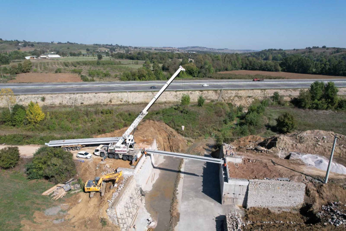 Akmeşe Osman Bey köprüsünde kiriş montajı