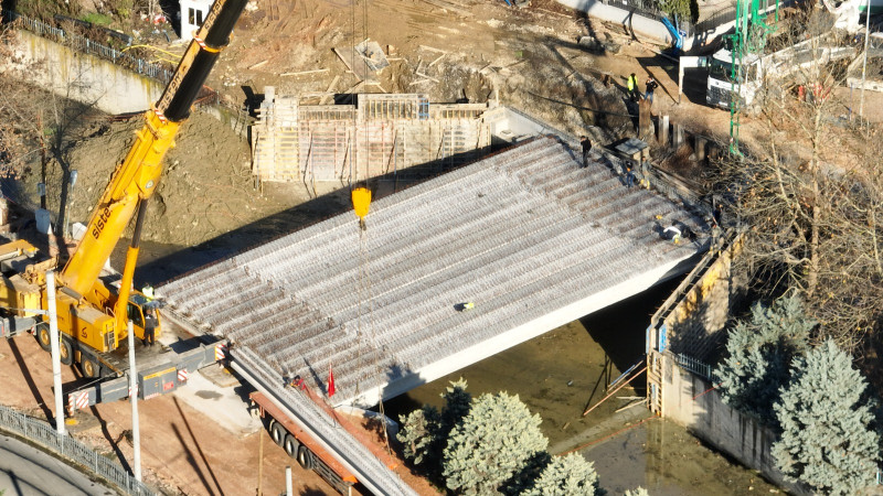Büyükşehir Raylı Sistem Dairesi Başkanlığı ekipleri, tramvayın Akarca Deresi üzerinden geçişini sağlamak amacıyla inşa edilen köprünün 650 metre uzunluğunda 24 adet fore kazık ve iki adet kenar ayak imalatlarını tamamladı. Ardından 26 metre uzunluğunda 19 adet ön germeli kiriş, vinç yardımıyla indirilerek, köprünün ayağına monte edildi. Ekipler, köprü inşaatını tamamlamak için çalışmalarını aralıksız olarak sürdürüyor.