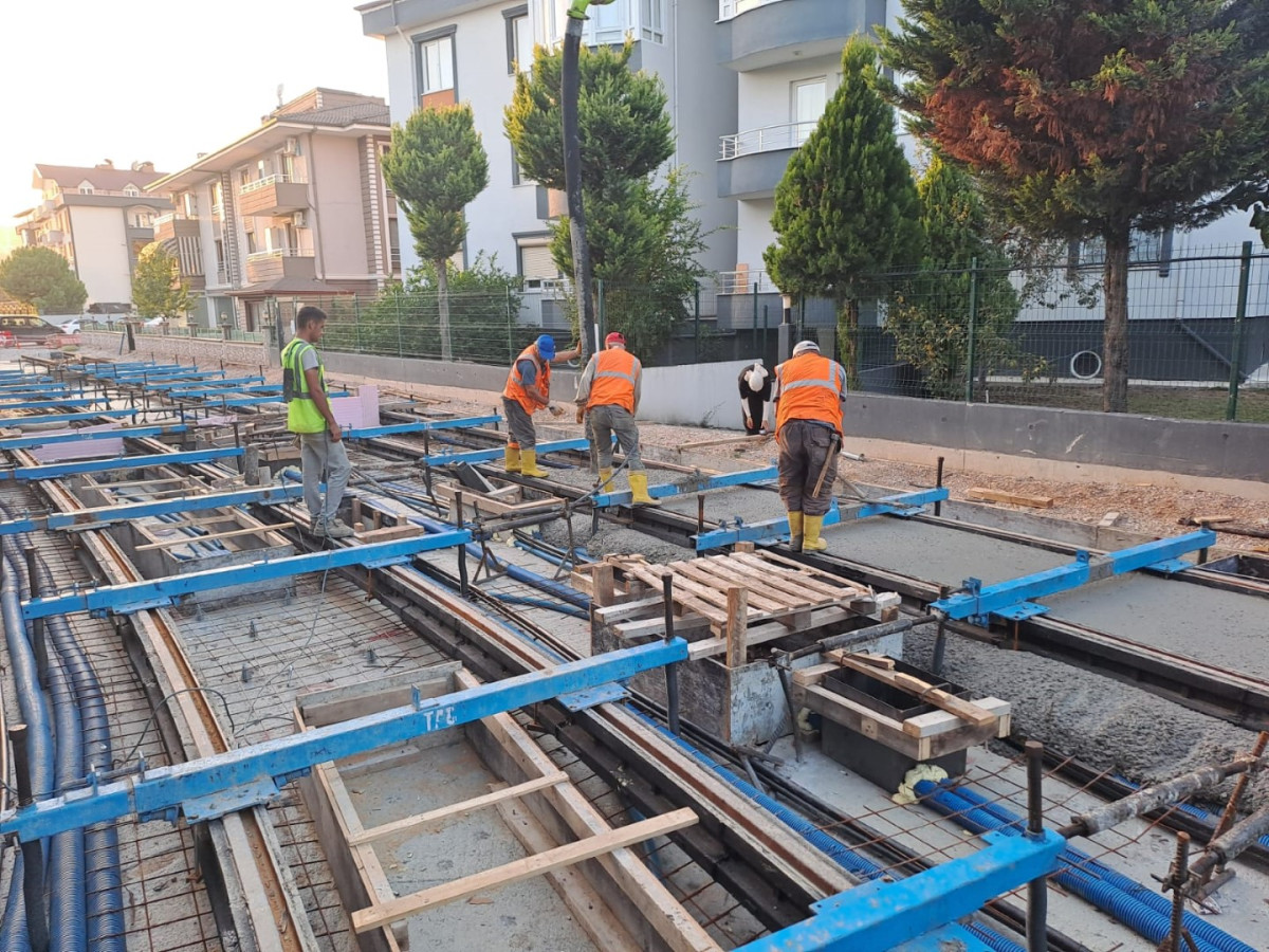 Alikahya Tramvayında ray betonları dökülüyor