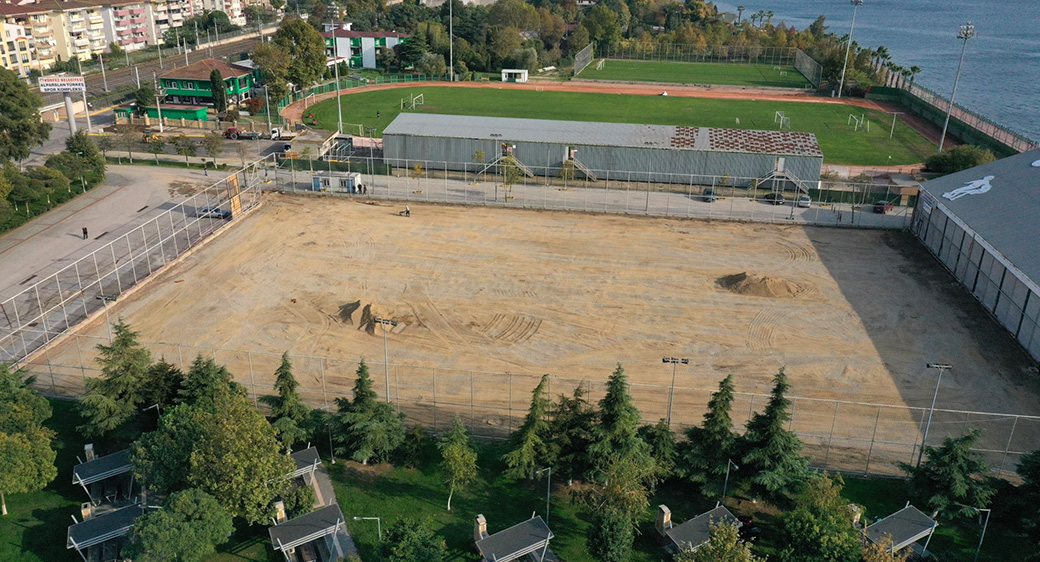 Körfez Alparslan Türkeş Spor Kompleksi içerisinde bulunan 5 bin 930 m²'lik alandaki çim kaldıran ekipler, sahanın zemininde hafriyat çalışmaları yapıyor. Drenaj sistemi için de çalışmalarını sürdüren ekipler daha sonrasında yağmur suyu hattı çekecek.