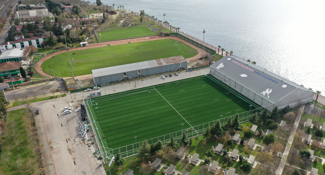 Spora ve sporcuya desteğini ürettiği tesisler ve projelerle sürdüren Kocaeli Büyükşehir Belediyesi, bu alandaki çalışmalarını yoğun bir şekilde sürdürüyor. Bu kapsamda Körfez Alparslan Türkeş Spor Kompleksi içerisinde yer alan sahanın birçok imalatı tamamlanırken şu an sahanın suni çimleri seriliyor.