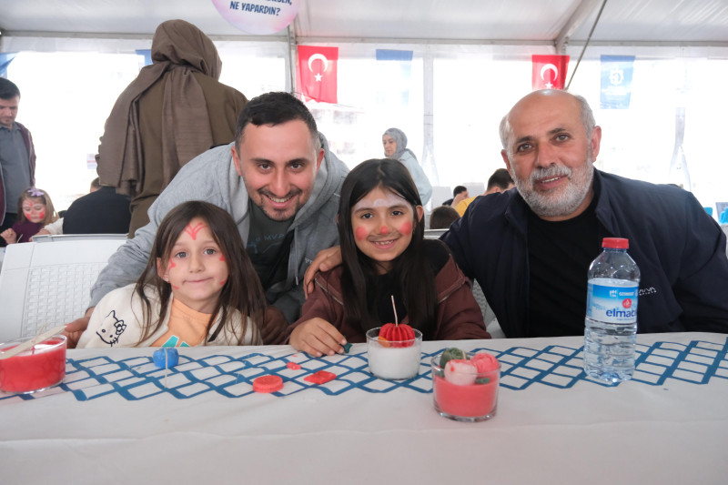Ramazan şenlikleri kapsamında gerçekleşen etkinlikte babalar, çocuklarıyla birlikte anneleri için özel mumlar yaptı.