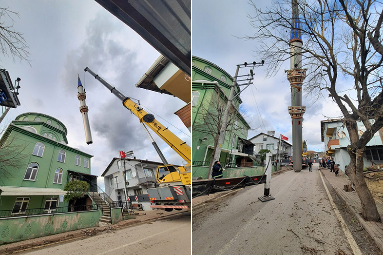 Arızlı Mahalle Muhtarı Ruhan Menteş, pazartesi akşamı şiddetli lodos ve kötü hava koşulları nedeniyle caminin minaresinin yan yattığını belirterek, desteklerinden dolayı Büyükşehir Belediyesine, AFAD ve Jandarma ekiplerine teşekkür etti.