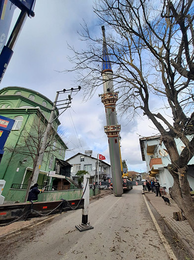 Şiddetli lodos nedeniyle İzmit Arızlı Mahallesi Merkez Camii’nin minaresinin yan yatması üzerine hemen olay yerine giden A Takımı ekipleri, devrilme tehlikesi bulunan minareye müdahale etti. Çelik konstrüksiyon kısımlarına kaynak yaparak sağlamlaştıran ekipler, minarenin devrilerek evlere ve vatandaşlara zarar vermesini önledi. Ekipler, daha sonra çevrede alınan güvenlik önlemlerinin ardından, minareyi vinç yardımıyla kaldırarak, TIR’a yerleştirdi. Hasar gören çelik konstrüksiyon minare, Büyükşehir Belediyesince bakım, onarım ve güçlendirme işlemleri tamamlandıktan sonra, yerine monte edilecek.