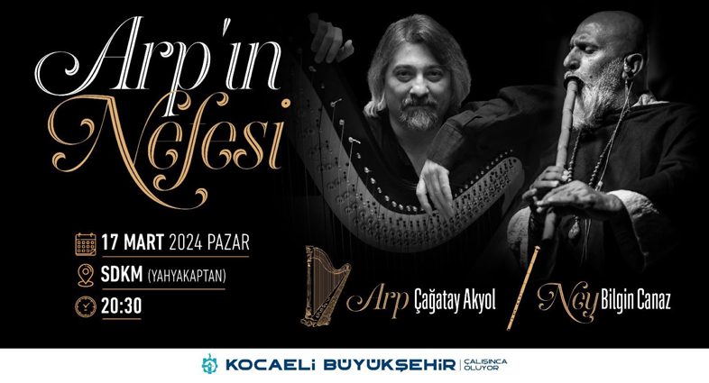 Kocaeli Büyükşehir Belediyesi, kültür- sanat etkinlikleri kapsamında düzenlediği konserlerine bir yenisini eklemeye hazırlanıyor. Cumhurbaşkanlığı Senfoni Orkestrası Arp Sanatçısı Çağatay Akyol ve geniş kitlelerce tanınan neyzen Bilgin Canaz ‘’Arpın Nefesi“ konseri ile 17 Mart Pazar akşamı Kocaelili sanatseverle buluşacak. SDKM Büyük Salondaki ücretsiz konser 20.30’da başlayacak. Arp Sanatçısı Çağatay Akyol ve neyzen Bilgin Canaz, konserde kadim tınılara sahip arp ve neyin birlikteliğini mistik bir yolculuğa çıkartacak.