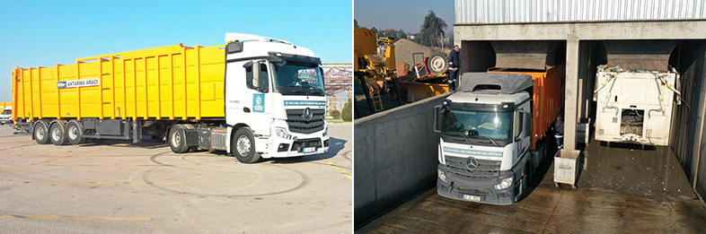 Gebze Aktarma İstasyonu (Gebze, Dilovası), Darıca Aktarma İstasyonu (Çayırova, Darıca), Kandıra Aktarma İstasyonu, Körfez Aktarma İstasyonu (Derince, Körfez), Gölcük Aktarma İstasyonu, Kartepe Aktarma İstasyonu ve Başiskele Aktarma İstasyonlarından alınan atıklar 20 adet çekici tarafından 116 personelle İZAYDAŞ’a taşınıyor. Özel olarak imal ettirilen dorselerde sızıntı suyu problemini minimize etmek amacıyla çift cidarlı sızdırmaz conta ve ilave sızıntı suyu toplama tankları yer alıyor.