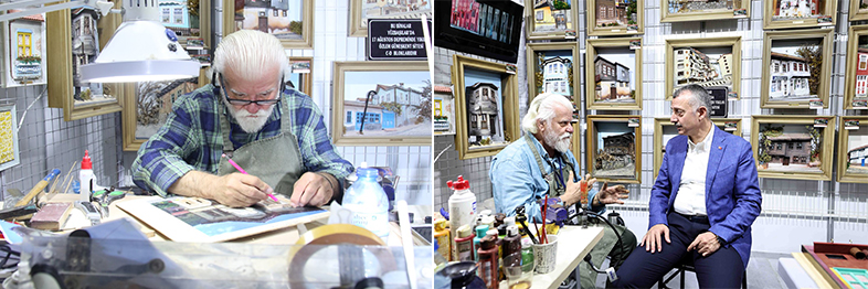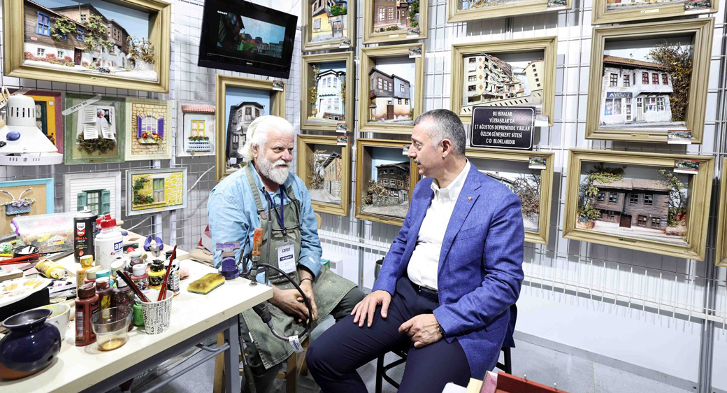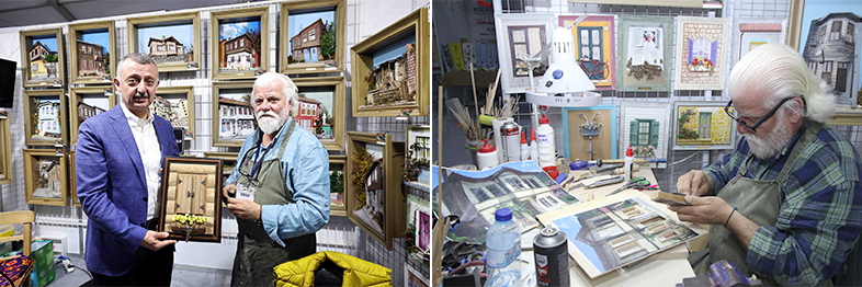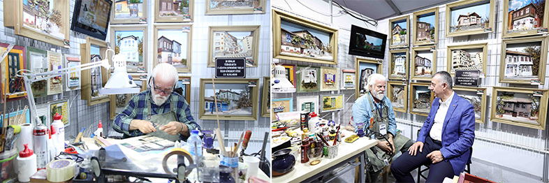 Bu yıl ilk kez kitap fuarına katılan rölyef sanatçısı Mehmet Erol Buga doğadaki doğal atıkları birleştirerek minyatür eserlerle eski evleri günümüze taşıdığından bahsetti. Rölyef Sanatçısı Mehmet Erol Buga, ‘’Asıl mesleğim denizcilik, bu sanata 28 yıl önce çocuğumun elişi dersi ödeviyle başladım. Zaman geçirmek için devam ettim ortaya güzel eserler çıktıkça daha çok ilgilendim. Bu zamana kadar üzerine katarak bu seviyelere geldi. 5 yıl öncesine kadar İstanbul’da yaşıyordum orada özel dersler verdim. Eşim Değirmendereli, 5 yıl önce buraya taşındım, küçük bir atölyem de var. Kendimce çalışmalarıma devam ediyorum. Değirmendere’de depremde yıkılan bir yapının minyatürünü atık rölyef çalışmasıyla yaptım. İnsanlar gördükçe duygulanıyor. Deprem anısı olan kişiler teşekkürlerini iletiyor duygulu anlar yaşanıyor” ifadelerini kullandı.
