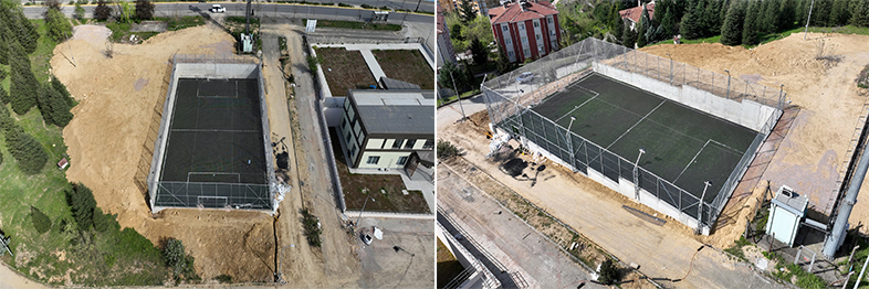Büyükşehir, İzmit Ayazma Mahallesi ada 726 parsel 1’e 21x36 ölçülerinde futbol sahası inşa etti. Sahanın sentetik çim serimini gerçekleştirilen ekipler, sahanın çevre duvarları, direnaj sistemi, alt yapısı ve gece aydınlatma çalışmasını tamamladı. Saha çevresini 6 metre yüksekliğinde galvaniz dikmeli çit ile çeviren ekipler, saha üzerini de delikli tampon tavan ağı ile kapattı. Saha yapılacak son rötuşların ardından hizmete girecek.