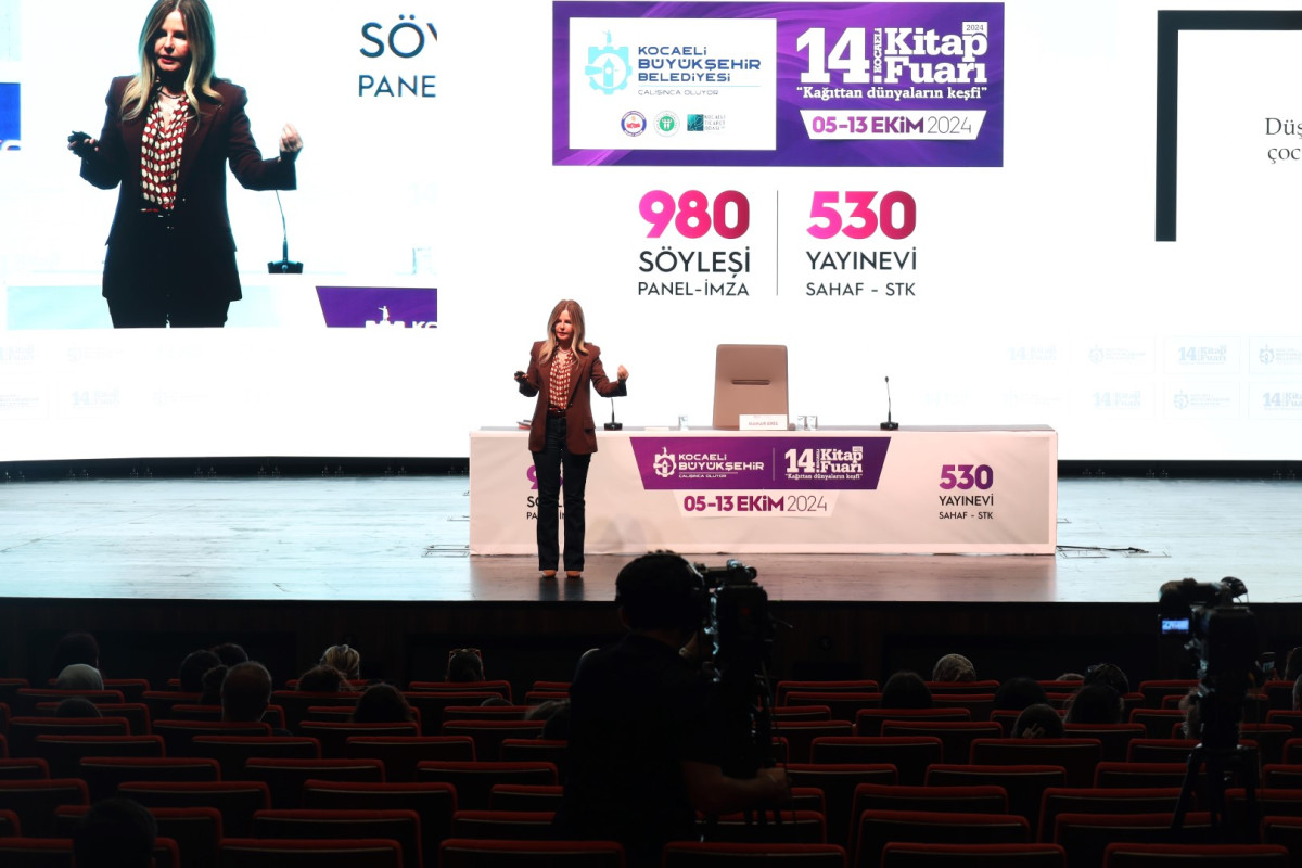 Kocaeli Kongre Merkezi Akçakoca Konferans Salonu’nda gerçekleştirilen söyleşide Bahar Eriş, “Düşleyen, düşünen, düşünce kalkan çocuklar” konulu konuşma yaptı. Eriş, çocukların kişiliklerinin gelişmesinde anne ve babayı rolünün çok önemli olduğunu söyledi. Çocukların iyi veya kötüyü bilerek doğmadığını, her şeyi hayatın içinde ebeveynden görerek uyguladığını dile getiren yazar, kaygı ve stres durumlarına değindi. Eriş, “Siz ne kadar kaygılıysanız çocuğunuz da hayatla ilgili o kadar kaygılı oluyor. Siz o haberleri okuduğunuzda, o stresi çocuğunuzun yanında yaşadığınızda çocuk da etkileniyor. Evet, dünya kaygılı. Hepimiz bu kaygıları günlük olarak yaşıyoruz ama bunu çocuğa hissettirmemeliyiz. Çocukların umudunu korumak çok önemli” ifadelerini kullandı.