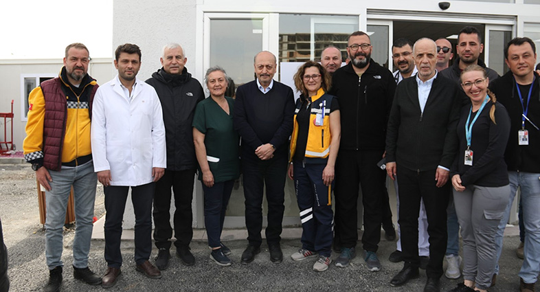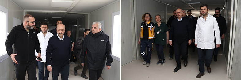 Çalışma ve Sosyal Güvenlik Bakanı Vedat Bilgin ile Türk-İş Başkanı Ergün Atalay, Kocaeli Büyükşehir Belediyesi’nin Hatay’ın Defne ilçesinde inşa ettiği hastaneyi ziyaret etti. Genel Sekreter Balamir Gündoğdu’dan hastanenin alt yapısı, konteyner kurulumu, elektrik ve tesisat işleri gibi çalışmaların 20 gün içinde tamamlandığı bilgisini alan ve hastane personeliyle tanışan Bakan Bilgin, Kocaeli Büyükşehir Defne Hastanesine tam not verdi.