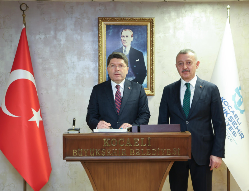 Adalet Bakanı Yılmaz Tunç bugün Kocaeli’ye gelerek önemli temaslarda bulundu. Yargı ve İş Dünyası Sempozyumu’nun açılışına katılan Bakan Tunç, ardından Kocaeli Büyükşehir Belediye Başkanı Doç.Dr.Tahir Büyükakın’ı ziyaret ederek çalışmalarında başarı diledi. Başkan Büyükakın, Kocaeli’nde çevre alanında yapılan yatırımlar ve çalışmalar hakkında Bakan Yılmaz Tunç’a bilgi vererek özellikle Körfez’i dev bir akvaryum haline getirecek olan Dip Çamuru Projesi’nin son durumu hakkında detayları paylaştı. Ziyaretin ardından günün anısına fotoğraf çekildi.