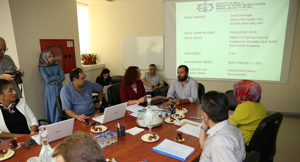 Kocaeli Büyükşehir Belediyesi’nin İzmit sahilinde Kumkapı Balık lokantaları bölgesi yanındaki alanda yapımı devam eden yeni Balık Pazarı’ndaki 7 balıkçı dükkanı ve 2 manav dükkanı için ihale yapıldı. Büyükşehir Belediyesi Encümen Toplantı salonunda gerçekleştirilen açık usul ihalede, balıkçı dükkânlarının muhammen aylık kira bedeli bin 500 TL + KDV, manav dükkânlarının muhammen aylık kira bedeli ise 1000 TL + KDV olarak satışa sunuldu. İhaleye eski balık pazarındaki dükkan sahipleri katıldı.