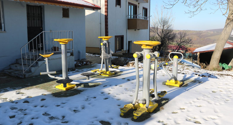 İzmit’in Balören Köyünde yaşayanların talebini değerlendiren Büyükşehir tarafından zorlu kış şatlarına rağmen köye çok amaçlı spor aletleri konuldu