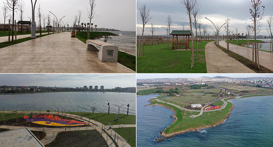 Bayramoğlu Sahil Parkı’nın hemen yanında inşa edilen Balyanoz Sahil Parkı için Park ve Bahçeler Daire Başkanlığı ekipleri, tel çit işlerini bitirdikleri tenis kortunun zemin boyasını hava koşullarına göre önümüzdeki günlerde yapacak. İçerisinde mescit, tuvalet ve deponun bulunduğu binanın ufak işler dışında diğer tüm imalatları tamamlandı. Sahil parkına gelecek vatandaşların araçlarını park edeceği iki otoparkın da asfalt serimi ve bordür imalatları gerçekleştirilirken bu kısımda önümüzdeki günlerde zemin çizgileri çizilecek ve yönlendirme tabelalarının montajı yapılacak. Yeşil alanlarda çimlendirilmelerin yapıldığı sahil parkında kentsel donatı elemanlarının montajı da yapılıyor. 6 kamelya ve 30 adet bankın montajlarının yapıldığı sahil parkında çocuk oyun grubu ile fitness spor aletlerinin kurulumları da gerçekleştirildi. Sahilde kurulan iskelelerin ahşap zemin kaplamaları bitirildi ve korkuluk montajları da tamamlandı. Sahil parkında bisiklet yolunun şerit boyaları yapılacak.