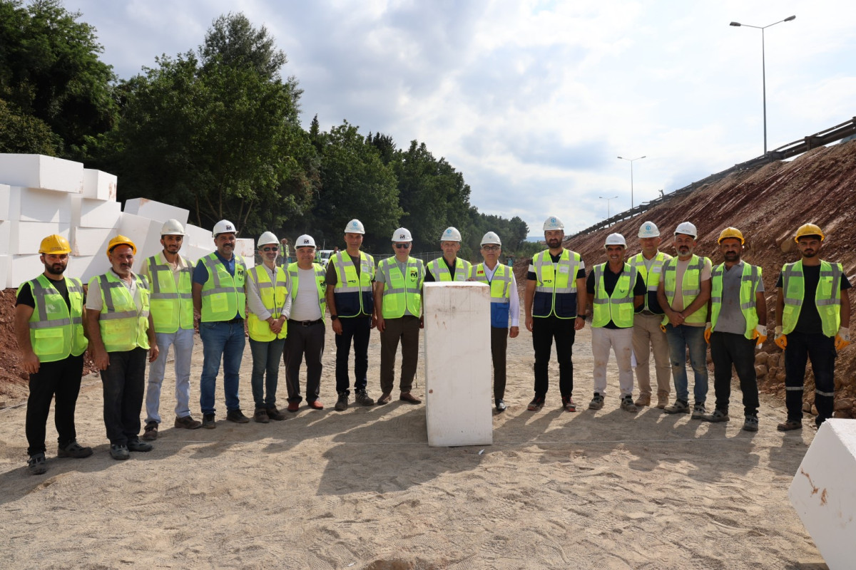 İncelemede, güney yan yolda yol teşkili için kullanılan yenilikçi dolgu malzemesi Geofoam bloklar dikkat çekti. Bu malzeme, hem yapım hızını artırıyor hem de yol kalitesini yükseltiyor. Geofoam, hafif ve dayanıklı yapısıyla altyapı çalışmalarında örnek teşkil ediyor.