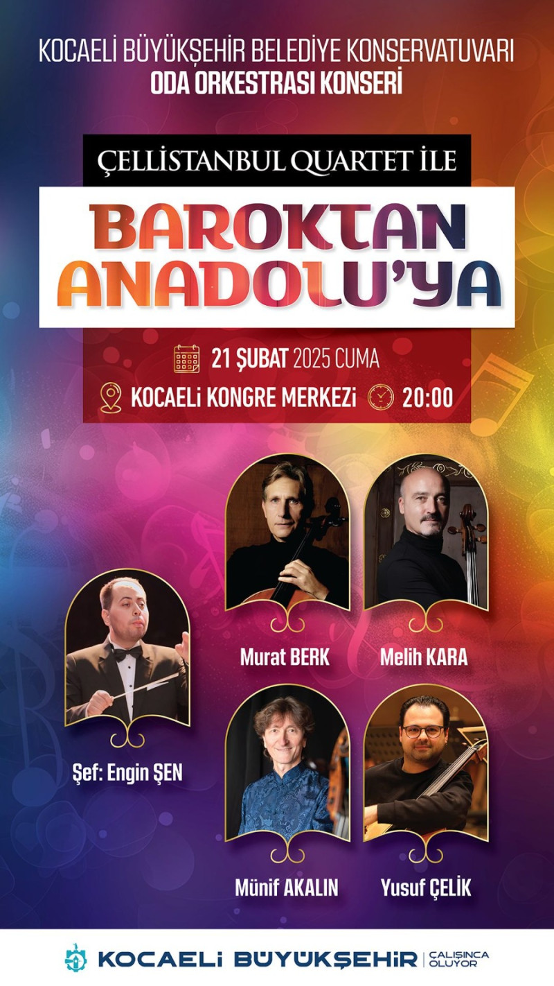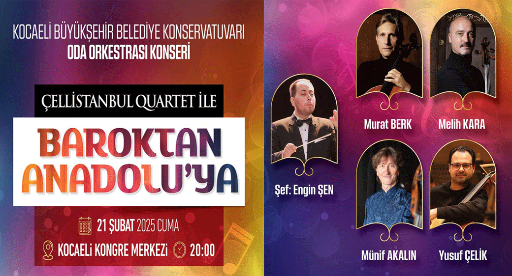 Büyükşehir Konservatuvarı Oda Orkestrası yine yıllarca unutulmayacak bir konser ile klasik müzik severlerle buluşacak. Engin Şen şefliğindeki Oda Orkestrası, 21 Şubat Cuma (yarın) akşamı Baroktan Anadolu’ya adlı konserinde ünlü Çellistanbul Quartet topluluğunu ağırlayacak.