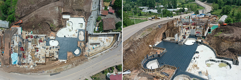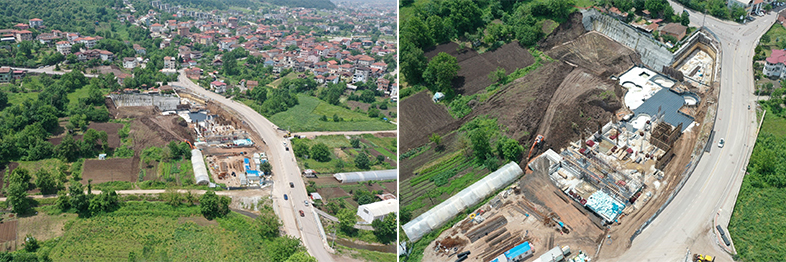 Projenin A bloğunun yapılacağı alanda hafriyat çalışmalarına devam ediliyor. B blokta ise grobeton dökümü tamamlandı. Ekipler yalıtım imalatlarına devam ediyor. Termal suyun tutulacağı deponun temel betonu döküldü, perde kalıbına devam ediliyor. C blokta -8.15 kotu ile -4.00 kotu arası kolon ve perdelerde demir donatı ve kalıp montajına devam ediyor. 3. Bodrum katta ise kaide betonları döküldü. Ayrıca kaba sıva imalatlarına devam ediliyor.