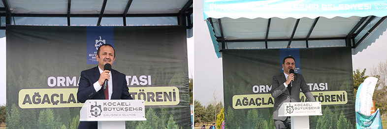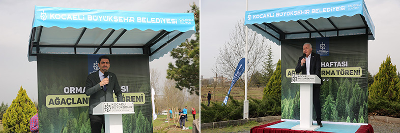 Programda konuşan Kocaeli Büyükşehir Belediyesi Başkan Vekili Yaşar Çakmak, “Orman Haftası nedeniyle ağaç dikim çalışmalarımızı sürdürüyoruz. Burada da başkanımız Tahir Büyükakın’ı temsilen bulunmaktan büyük mutluluk duyuyorum” dedi. Kocaeli’de toplam 8,8 milyon ağaç dikimi gerçekleştirildiğini belirten Çakmak, “Böylece hemşerilerimizin rahat nefes alabileceği bir ekosistemi hayata geçirdik” dedi. Çakmak, “Kocaeli Üniversitesi ve Kocaeli Büyükşehir Belediyemiz işbirliğiyle 35 dönüm arazide 1000 adet fidan ile çevre dostu belediyecilik anlayışında örnek olmaya devam ediyoruz. Türkiye’de yeşil dönüşümün en güzel örneklerinden biri Kocaeli’dir” şeklinde konuştu.