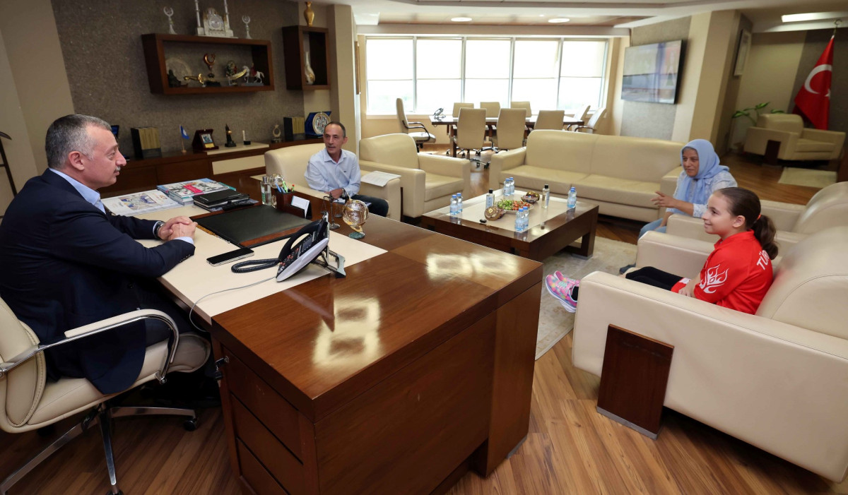 Başkan Büyükakın, Türkiye Satranç Şampiyonu Beren Çetin’i makamında konuk etti, Dünya Şampiyonası’nda başarılar diledi