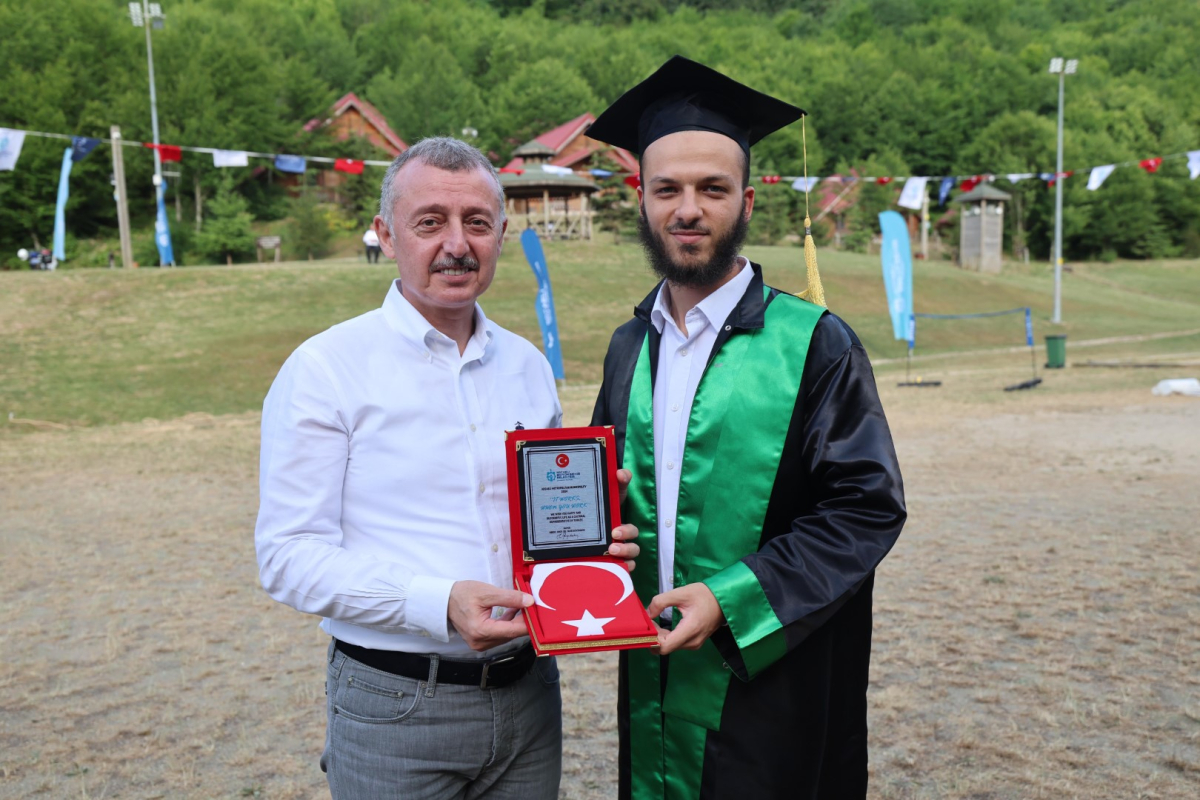 Kocaeli Büyükşehir Belediyesi’nin ödüllü gençlik modeli ‘Kılavuz Gençlik’ çatısı altında faaliyet yürüten Akademi Üniversite-Uluslararası Öğrenciler Birimi, Kocaeli’de okuyan uluslararası öğrenciler için mezuniyet töreni düzenledi. Gençlik ve Spor Hizmetleri Dairesi Başkanlığı’nın uluslararası öğrencilere yönelik yürüttüğü çalışmalar kapsamında Diriliş-1 Kampı’nda düzenlenen mezuniyet töreninde öğrenciler kep attı. Kocaeli’nin kültür elçilerinin renklendirdiği programda konuşan Büyükşehir Belediye Başkanı Tahir Büyükakın, “Her ne yapıyorsanız yapın insanlık için mücadele edin. Gittiğiniz yerlerde, burada öğrendiğiniz güzellikleri anlatmayı unutmayın” dedi.