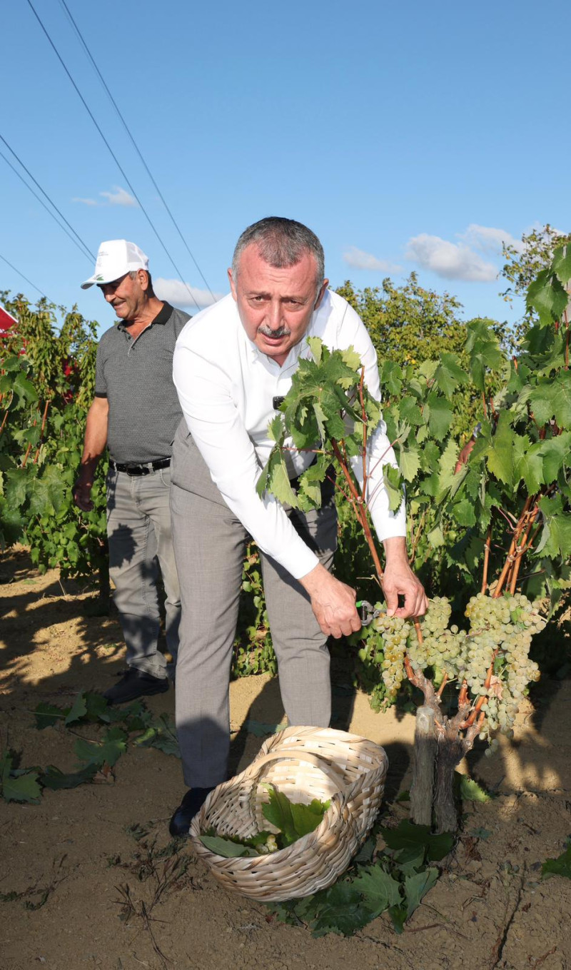 Başkan Tahir Büyükakın, Kocaeli Büyükşehir Belediyesi’nin gübre ve mazot desteği ile üretilen üzümlerin hasadına katıldı. Üreticinin her zaman yanında olduklarını belirten Başkan Büyükakın, “Üretici kazanırsa, Kocaeli kazanır, Türkiye kazanır” dedi.