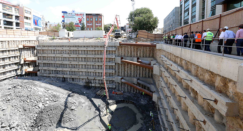 Başkan Büyükakın, Büyükşehir Belediyesi’nin vizyon projelerinden biri olan Gebze- Darıca metro hattı çalışmalarını yakından takip ediyor. Tüm hızıyla süren projenin Gebze Kent Meydanı’ndaki istasyon çalışmalarını denetledi.