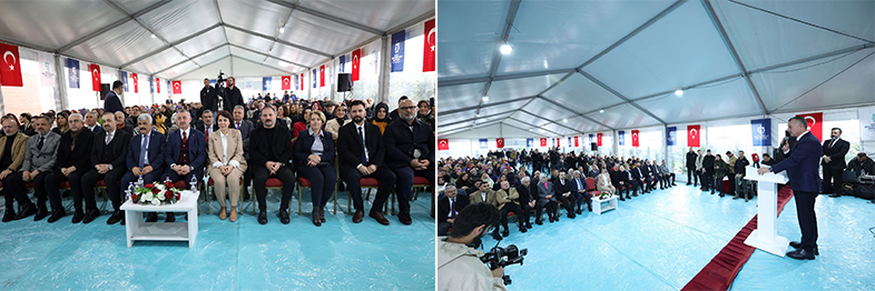 Konuklar yağmur nedeniyle merkezin önünde kurulan çadıra davet edildi.