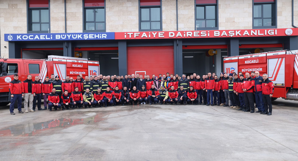 Başkan Büyükakın, deprem bölgesinde cesaret ve fedakarlıkla görev yaparak 82 vatandaşı enkazdan kurtaran Kocaeli İtfaiyesini ziyaret etti