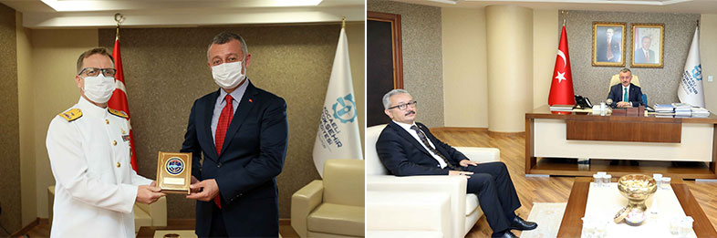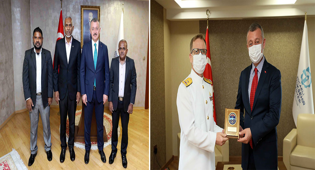Marmara Belediyeler Birliği ve Kocaeli Büyükşehir Belediye Başkanı Doç. Dr. Tahir Büyükakın, görevlerine yeni atanan Gölcük Deniz Ana Üs Komutanı Tuğamiral Azız Bakıoğlu, İl Jandarma Komutanı Yavuz Selim Kapancı, İl Milli Eğitim Müdürü Ömer Akmanşen’in yanı sıra Maldivler-Male Belediye Başkanı Dr. Mohamed Muizzu ve beraberinde ki heyeti makamında konuk etti. Yıldızlar Su Üstü Eğitim Merkez Komutanı olarak görev yürütürken Deniz Ana Üs Komutanlığına atanan Tuğamiral Aziz Bakıoğlu’na ilk olarak misafir eden Başkan Büyükakın, Kapancı ve Akmanşen’in ziyaretlerinden duyduğu memnuniyeti de ifade etti. Yapılan atamaların ülkemiz ve şehrimiz için hayırlar getirmesini dileyen Başkan Büyükakın, “Yeni görevleriniz hayırlı uğurlu olsun. Sizlere üstün başarılar diliyorum” dedi.