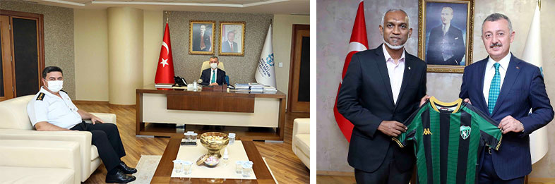 Maldivler-Male Belediye Başkanı Dr. Mohamed Muizzu ise, “Bizleri ağırladığınız ve belediyecilik anlamında verdiğiniz her türlü destek için çok teşekkür ederim. İSU Scada sistemleri başta olmak Su ve Atıksu Tesisleri Dairesi Başkanı Süleyman Karabayır tarafından teknoloji merkezinde yapılan çalışmalar hakkında bilgi aldık. Kısa bir süre Kocaeli’nde kalmamıza rağmen çok verimli birkaç gün geçirdik. Kocaeli Büyükşehir Belediyesi’nin gerçekleştirdiklerinden ve tecrübelerinden çok istifade ettik. Sizlere de ayrıca bizlere verdiğiniz samimi destek ve ilgiden dolayı da ayrıca çok teşekkür ediyorum” ifadelerini sarf etti. Başkan Büyükakın, ayrıca konuk belediye başkanına Kocaelispor forması da hediye etti. Başkan Büyükakın, Görüşmeler çekilen hatıra fotoğrafının ardından sona erdi.