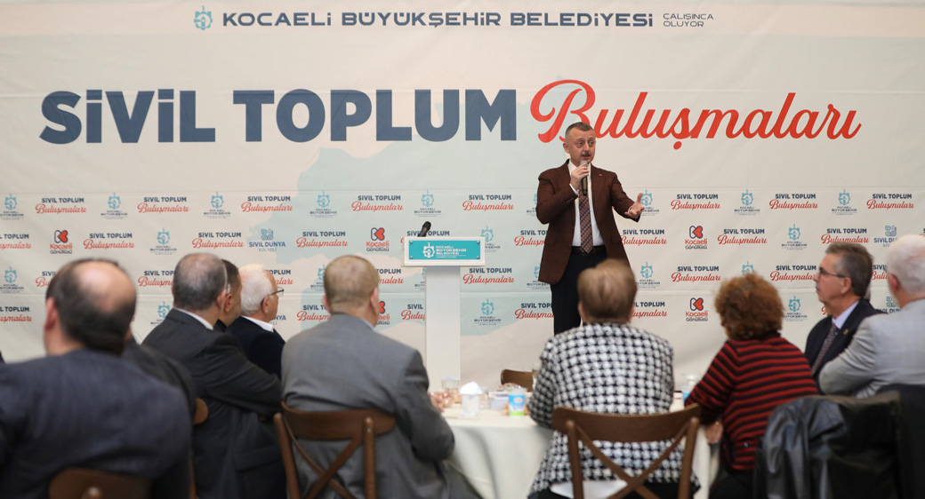 Kocaeli Büyükşehir Belediye Başkanı Tahir Büyükakın, Sivil Toplum Buluşmaları kapsamında organize edilen toplantıda İzmit’teki Sivil Toplum Kuruluşlarıyla bir araya geldi. Büyükşehir Belediyesi Genel Sekreteri Balamir Gündoğdu ve Genel Sekreter Yardımcıları Gökmen Mengüç, Sadık Uysal ve Hasan Aydınlık’ın da eşlik ettiği toplantıda konuşan Başkan Büyükakın, “Devletlere yönelik, sosyolojiye yönelik bu değişimler aslında sivil toplumun yapısını da değiştirmeye başlıyor. Daha hızlı hareket edebilen başka odak noktalarına, başka ilgi alanlarına yönelen yapılarda ortaya çıkmaya başlıyor ve oraya doğru gidiyor” ifadelerini kullandı.