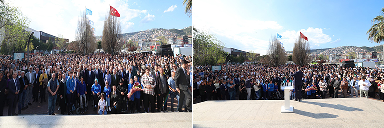 31 Mart yerel seçimlerinin ardından mazbatasını alan Başkan Büyükakın’ı Büyükşehir personeli belediye binası önünde karşıladı