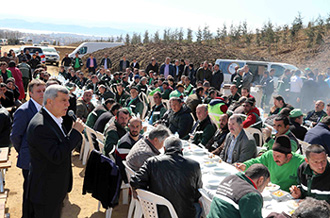 Başkan Karaosmanoğlu, Gebze Beylikdağı’nda 320 bin fidanı toprakla buluşturan çalışanlar bir araya geldi, öğlen yemeği yedi.