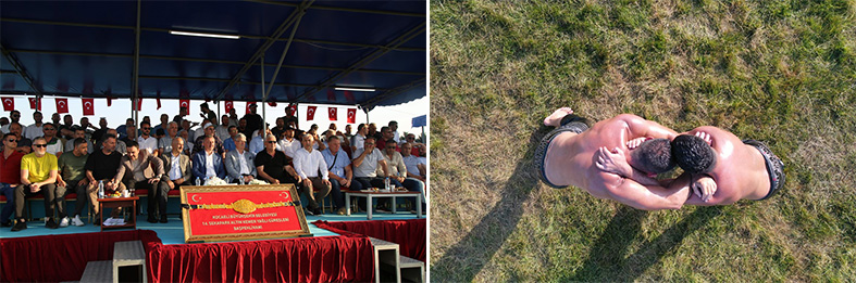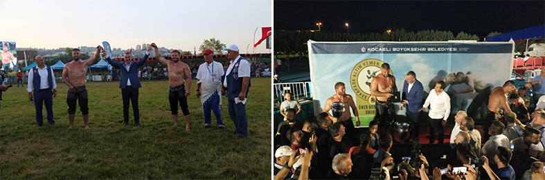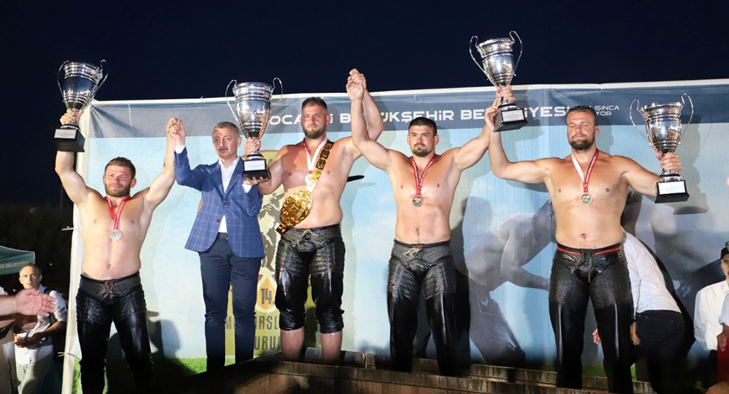 14. Altın Kemer Yağlı Güreşleri heyecanı son günün çeyrek final yarı final ve final heyecanıyla katlandı. İlk gün cuma namazı sonrası düzenlenen kortejle başpehlivanlar Cumhuriyet Bulvarında yürüyerek hem organizasyonun startını vermiş hem de Kocaeli halkını güreşleri izlemeye davet etmişti. 3 gün süren organizasyonda binin üzerinde güreşçi, bu yıl İzmit Atletizm Pistinde kol bağladı. Türk kültürünün önemli değerlerinden ata sporumuz yağlı güreş, Kocaeli’de yaşatıldı. Son gün 14 kategoride minikten küçükortaküçük, Küçük ortabüyük, Büyük orta, Baş altı, başpehlivanlık elemeleri yapıldı. Dereceye girenlere ödülleri takdim edildi. Alana gelen Kocaeli Büyükşehir Belediye Başkanı Doç. Dr. Tahir Büyükakın Altın Kemer yağlı güreşlerinde final heyecanına ortak oldu. Başpehlivanlık finalinde İsmail Balaban ve Nedim Gürel’in güreşini heyecanla takip etti. Kıyasıya mücadeleden sonra başpehlivanlığı ve altın kemeri kazanan Kocaeli sporcusu Nedim Gürele altın kemeri ve kupayı takdim etti.