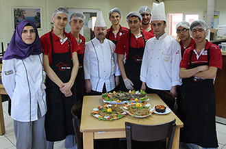 <p>Beyaz Kalpler aşçı yardımcılığı öğrencileri, İsmail Usta ve eğitmenleri Durali Usta ile birlikte balık çeşitleri olarak; kalamar, karides, çupra, hamsi tava ile garnitür olarak acılı, çoban ve yeşil salatadan oluşan muhteşem bir balık menü hazırladı. Beyaz Kalpler aşçı yardımcılığı öğrencilerinin hazırlığına katkı sağladıkları görülmeye değer balık menü, servis elemanlığı kursu öğrencileri tarafından merkezde öğrendikleri sunum teknikleri ile servis edildi.</p>