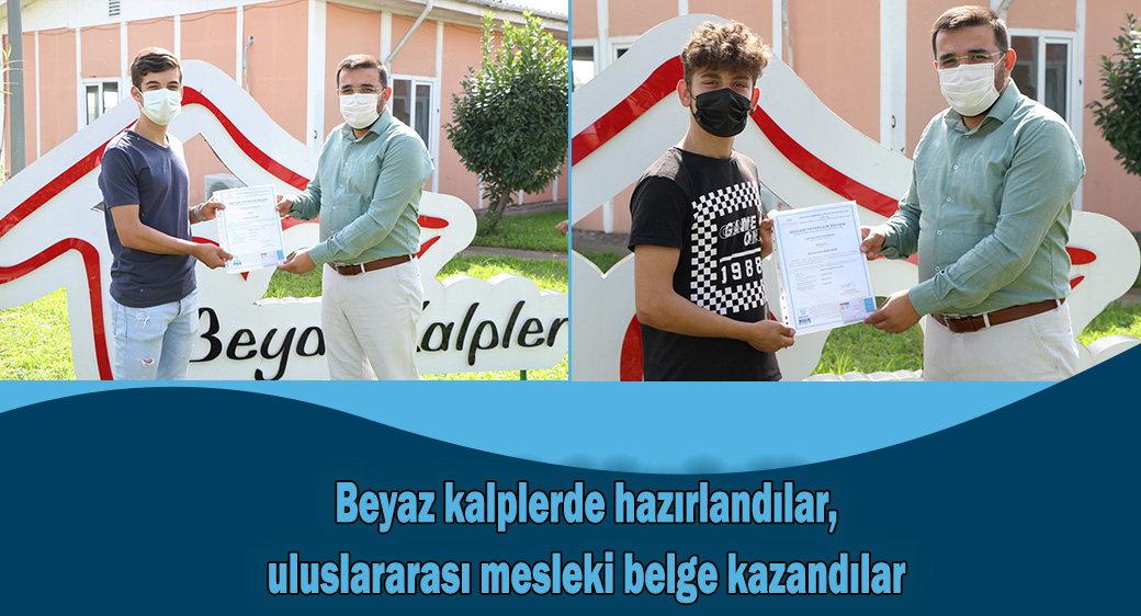 Bu kapsamda Beyaz Kalpler Eğitim ve Gelişim merkezinde eğitim gören öğrencilerden Muhammet İkbal Akın ve Berdan Üçgüler Mesleki Yeterlilik Kurumunun düzenlediği mesleki yeterlilik sınavına katıldı. Kamera önünde yapılan ve daha sonra üniversiteden gelen bir heyet tarafından incelenerek sonuçları açıklanan sınavda Muhammet İkbal Akın ve Berdan Üçgüler uluslararası geçerliliği olan belge almaya hak kazandılar.