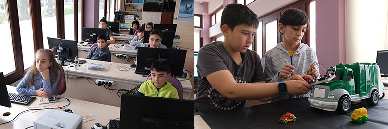 Bu kapsamda Bilgievlerinde robotik kodlama eğitimleri sonucunda başarı gösteren yetenekli öğrencilerin olduğu proje sınıfındaki öğrencilerle bilişim öğretmenlerinin kontrolünde, güncel teknoloji takip edilerek, çevre, doğa ve insan hayatını kolaylaştırmaya yönelik, sosyal inovasyon konularında beyin fırtınası yapıldı ve uygulanabilirliğine karar verilen fikirler projeye çevrildi. Bu kapsamda Emirler takımı (ilkokul): Otomatik kapanan buzdolabı kapağı projesi, Uzmanlar takımı (ilkokul): Akıllı enerji projesi, Kılavuz takımı (ortaokul): Secure Track ve Futbol yıldızları takımı (ortaokul /ilkokul): Futbol Hakemi projelerini ortaya çıkardı. Bilişim sınıfında öğrencilerle projenin elektronik devre tasarım çalışmaları devam ediyor.