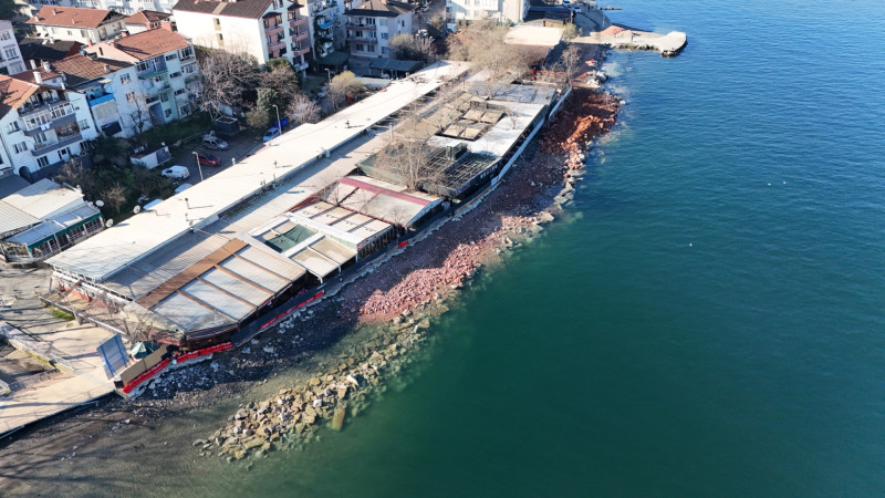 Bir dalga kırıcı set de Değirmendere sahiline