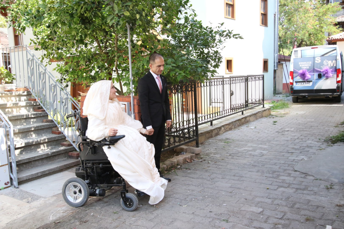 Büyükşehir Belediyesi’nin Engelsiz Taksi aracı Saliha Sarıkaya’nın en mutlu gününde düğün arabası olarak hizmet verdi