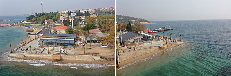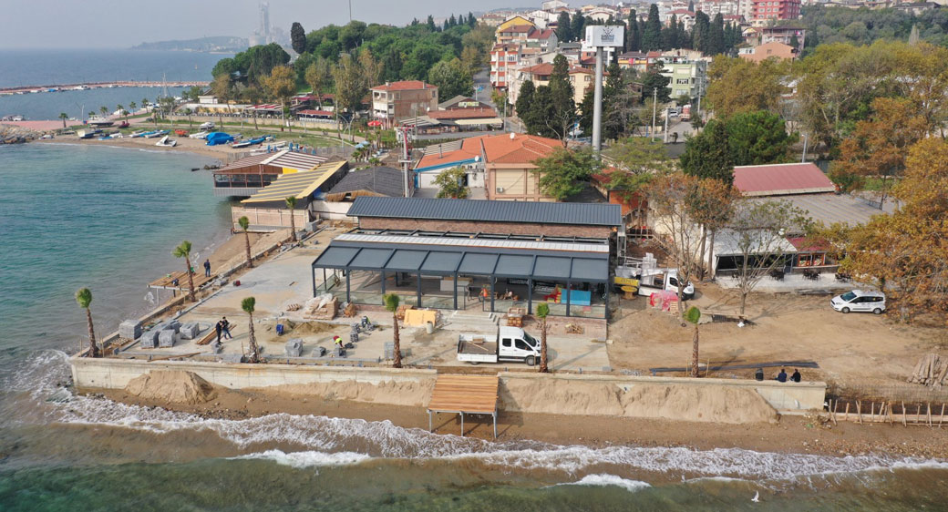 Kocaeli Büyükşehir Belediyesi’nce yapımı tamamlanan Darıca Şehit Er Gökhan Hüseyinoğlu Sahil Parkı, mavi ile yeşilin muhteşem ahengini yansıtan alanları ile bölgenin cazibe merkezlerinden birisi oldu. Vatandaşlar için her şeyin düşünüldüğü sahil parkının, birinci etap girişinin karşındaki bina yıkılarak Park ve Bahçeler Daire Başkanlığı tarafından yeni modern bir restorana dönüştürülüyor. Birçok imalatın tamamlandığı ve sert zemin bazalt taş yapımı çalışmasının sürdüğü restoran tamamlandığında Darıca sahil parkının incisi olacak